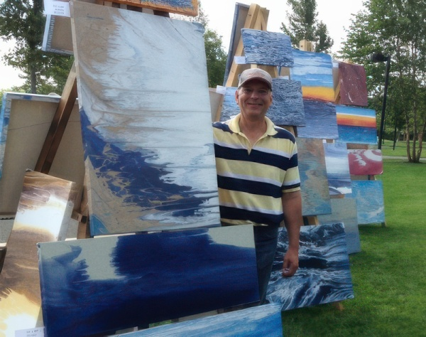 View Chuck’s abstract imagery at Chuck’s Flooring in East Burke Village. His work reflects a love of the ocean and nature. Chuck’s paintings are created on stretchers that are made in Vermont from reclaimed wood.
