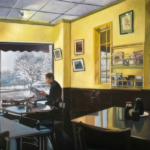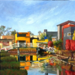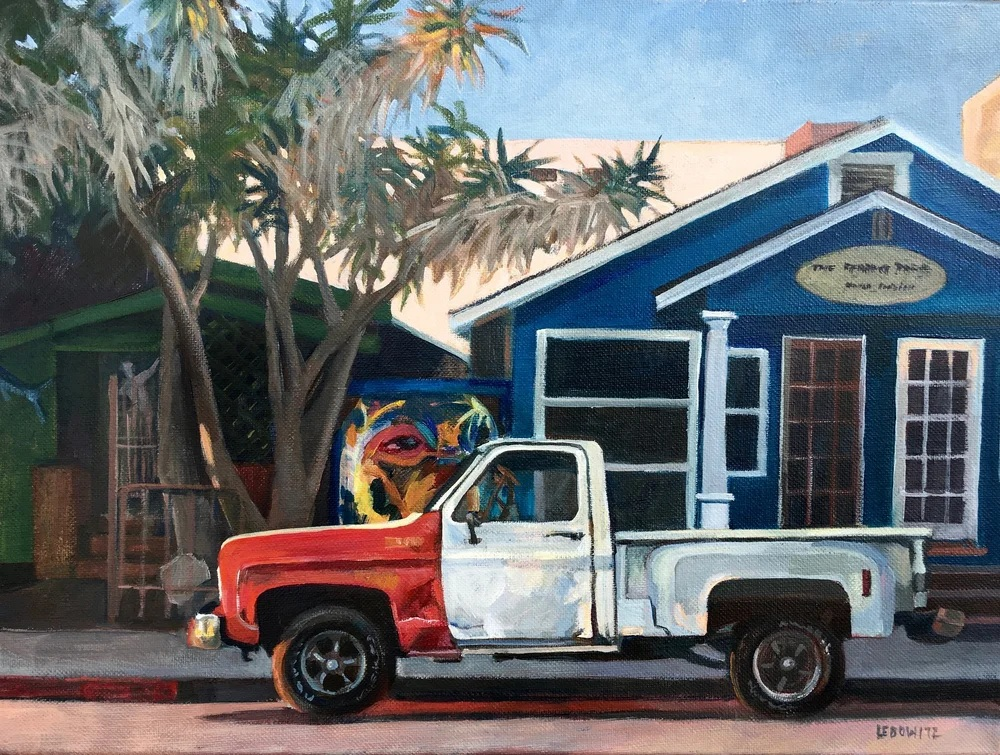 Vermont artist, Meryl Lebowitz, has been creating unique visual art for more than 30 years. A self-taught oil painter, Lebowitz has experimented with painting not only on canvas and paper, but also on a variety of unlikely surfaces, from violins to scrap metal. Her paintings range from the realistic to the surrealistic, often combining photographs with the painted image. Her subjects are familiar: local faces and landscapes, the interior of her studio or favorite restaurants, friends and family, but their appeal is universal. Her award winning work can be found in collections throughout the United States.