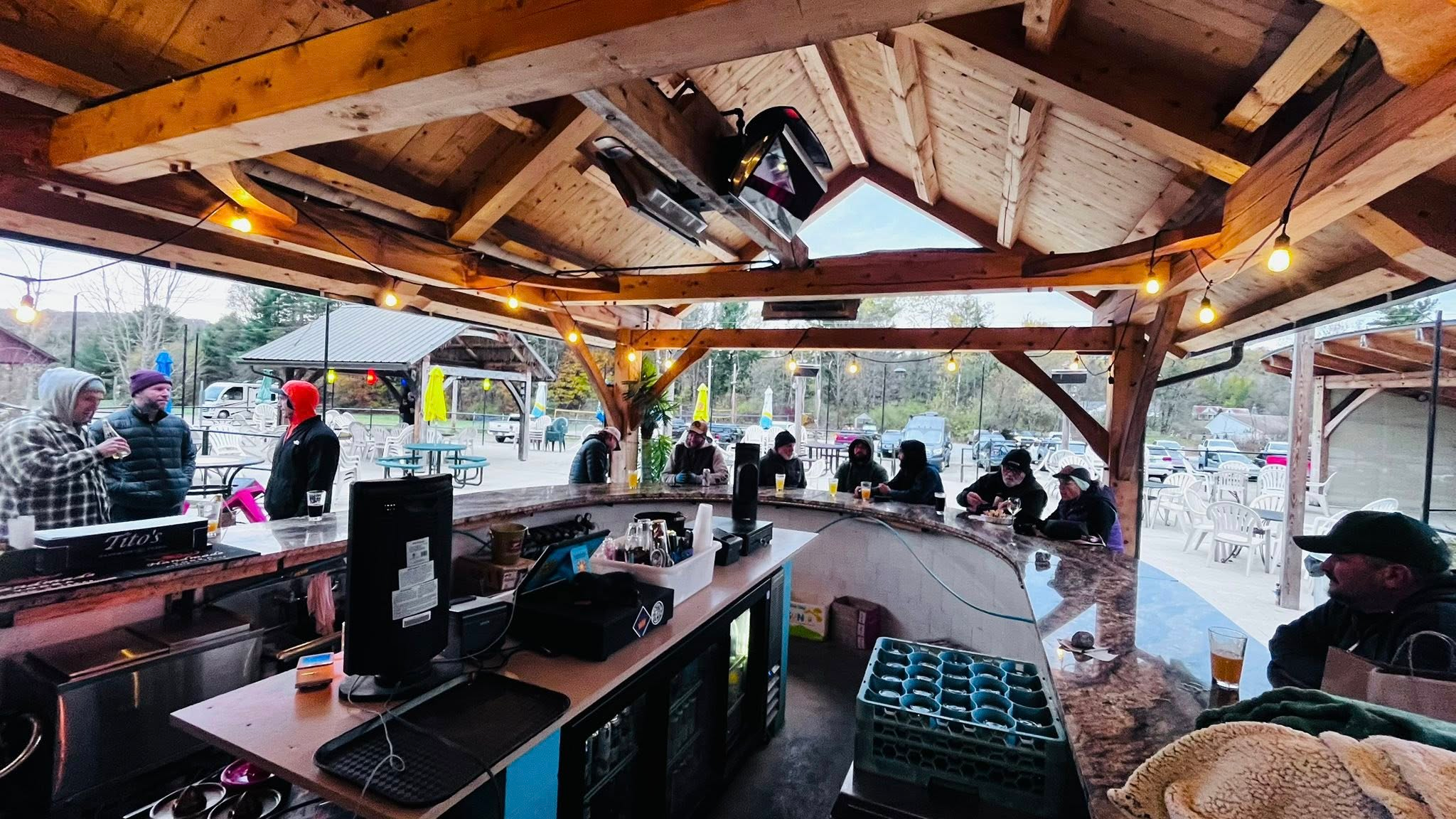 Open May – October, Monday-Friday 3-close and Saturday- Sunday noon-close. Featuring over 30 micro brews and live music on select nights! Located next to Kingdom Trails with showers on site. Two Tamales and Flat Tire Pizza food trucks on site.