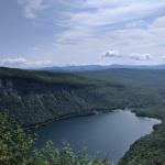 Elevation 2648 feet. Parking and trailhead for Mt. Hor are on CCC Road off of Route 5A about 1/2 mile south of the Southern end of Lake Willoughby. Follow the dirt road for about 2 miles to get to the trailhead. The summit offers near views of several ponds in the valley to the west and a distant view of the Green Mountains. From the two Lake Willoughby overlooks you’ll have views of the lake below and distant views of the White Mountains, Owl’s Head and Mount Orford. For an even longer hike, connect to the Moose Mountain Trail.