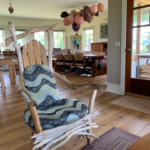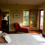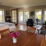 The Cottage was once my art studio, and is a self contained building with windows on all sides. It has a king sized bed and enough space for a couple of blow-up beds if need be.